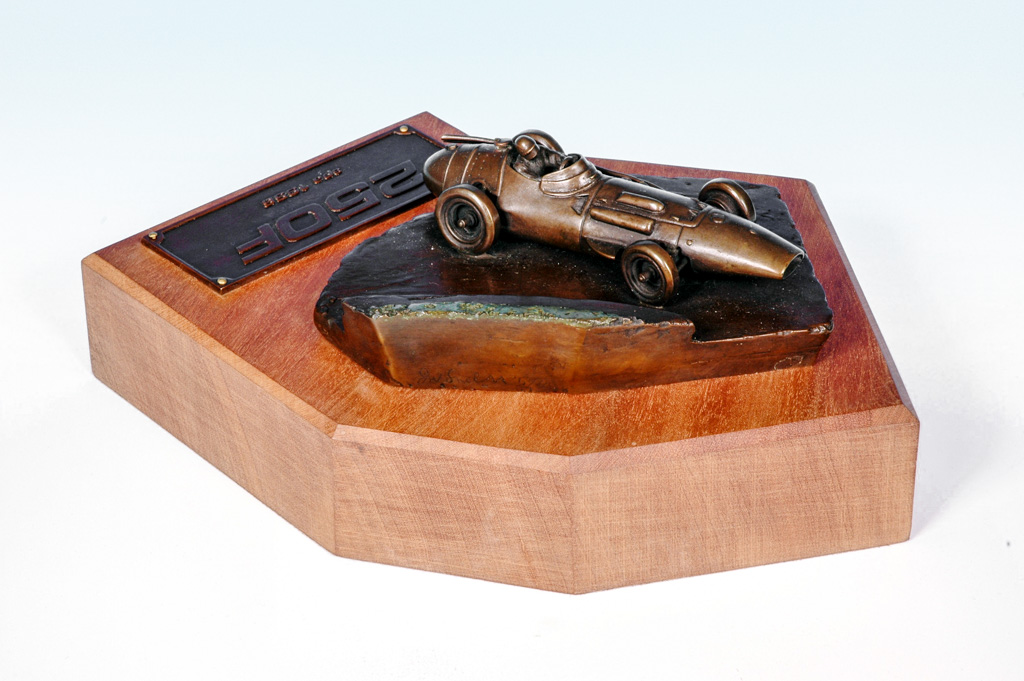 Wet weather in Spa saw Sterling Moss racing the ‘aerodynamic’ experimental Maserati 250F. He drove hard in typical Moss style. In fact he drove so hard that the wheel fell off… literally. Here we see that car chassis number 2501 rounding the hairpin at Spa in 1956.